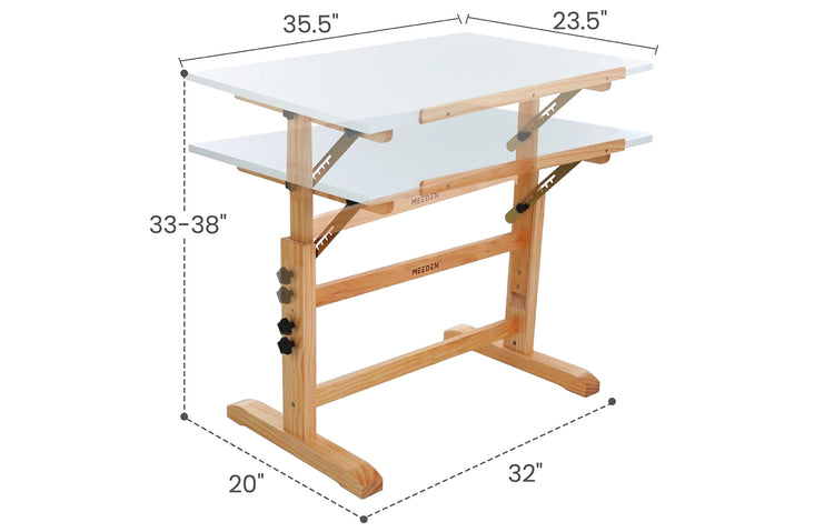 MEEDEN Adjustable Wooden Drafting Table & Stool Set, White-XSZ-5