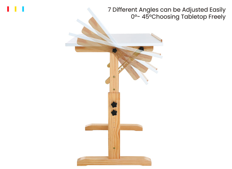 • Adjustable Height & Tabletop: The height can be adjusted from 26" to 33". Two knobs on the side legs adjust the height and stabilize the drawing table without shaking. With 7 angles, the tabletop adjusts from flat to 45°, allowing for flexible adjustment to a comfortable working position.