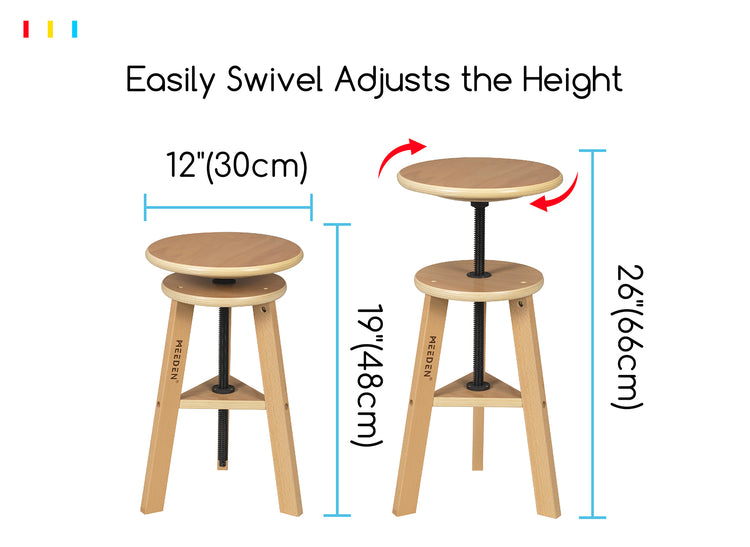 • Fits in Small Spaces: This wooden stool chair can be adjusted from 18.9" to 25.6" tall, and its dimensions are 16.5" W x 11.8" D x 18.9"~25.6" H. It can be used in various places without worrying about space issues.