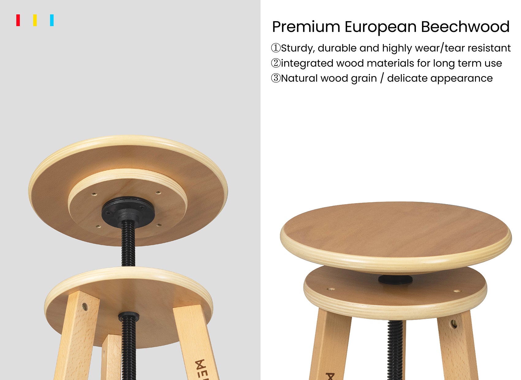 • Built to Last: The artist's drafting stool is handcrafted from solid German Beech wood, which is strong, durable, and has high shock resistance. It features a clear wooden texture, a polished smooth surface, and is burr-free. Exquisite craftsmanship extends the service life of the art stool.