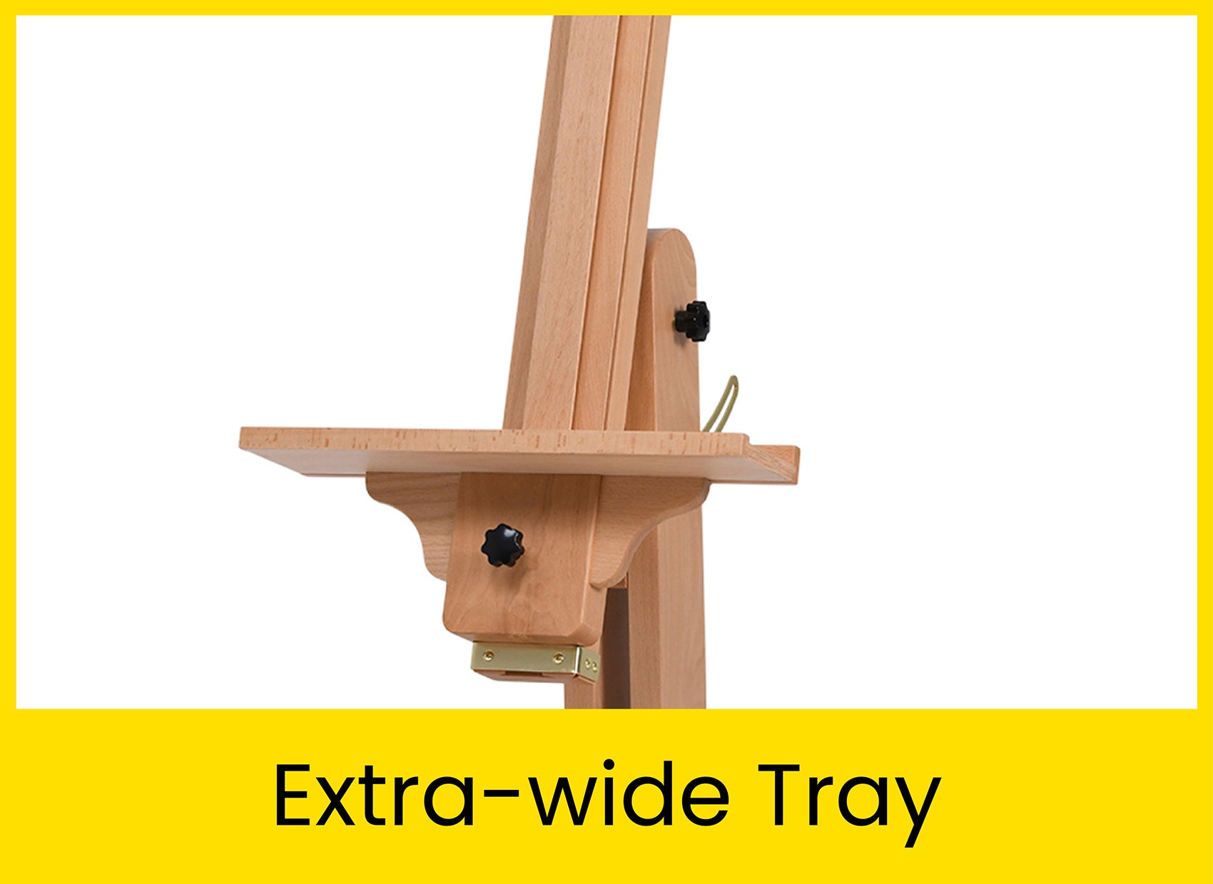 The extra-wide tray can be used as a storage console, not only to support your artwork but also a plate to place your tools like brushes, art paints and palette knives.