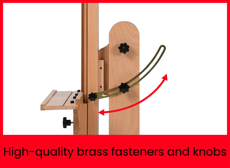 High-quality brass fasteners and knobs are corrosion-resistant and durable, ensuring the easel's superior quality and longevity.
