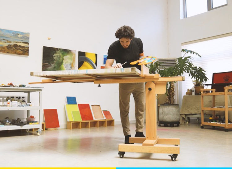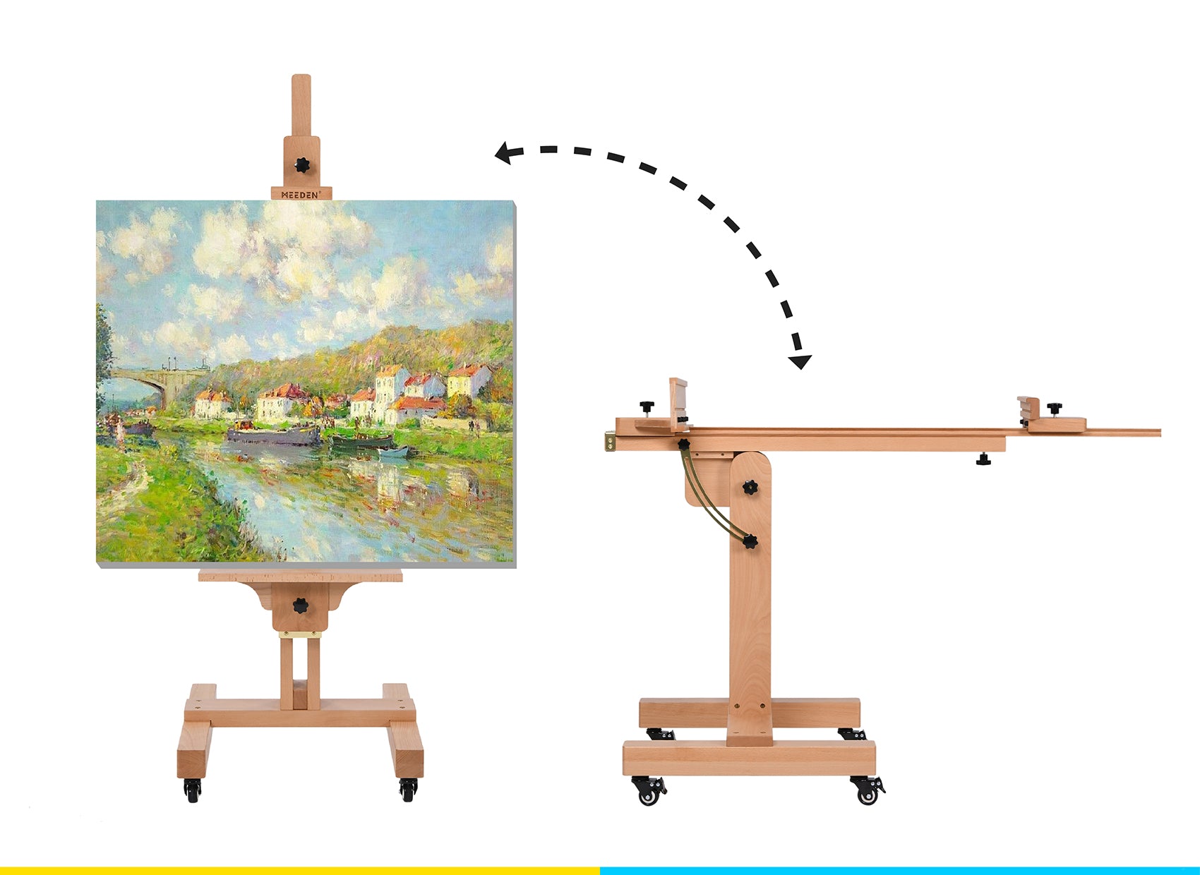 Equipped with 360° rotating casters and metal brake pads so that the artists can silkily rotate and move the easel into an exact place & capture the perfect angle.