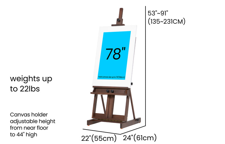 - Artist Heavy-Duty Easel - Crafted from seasoned beechwood, this large easel supports canvases up to 78" high and 44 lbs. Its walnut-finished surface is smooth and elegant, ensuring long-lasting protection.