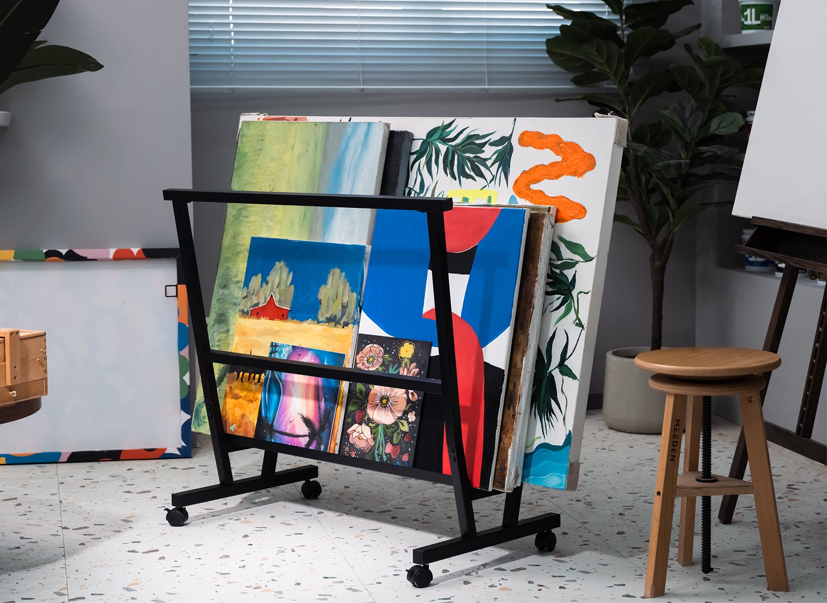 - Premium Materials: The Metrocarts storage rack is crafted from high-quality metal and features a durable baking paint finish. This combination of excellent load-bearing capacity and refined craftsmanship makes it not only a functional piece but also a beautiful addition to any studio, providing secure storage for your artwork.